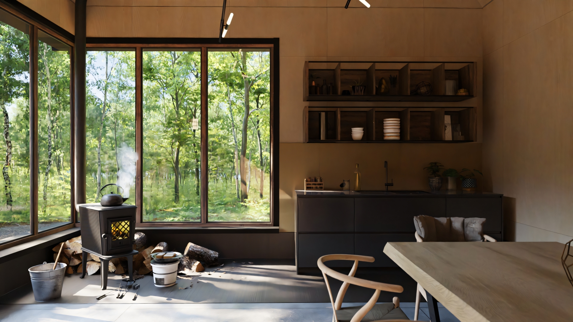 豊かな自然の中で大型犬も思う存分走り回ることができる広々としたスペース。キッチンスペースもご用意しておりますので、食材を持ち込んで自由に調理可能です。