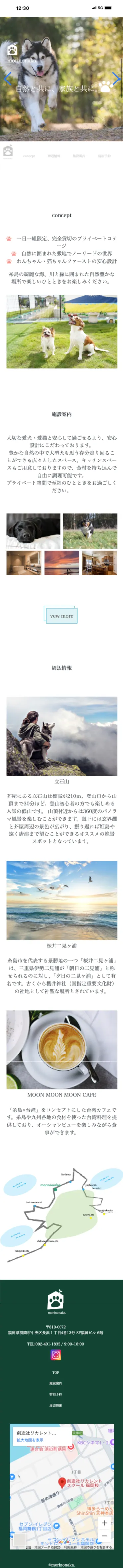 愛犬愛猫と一緒にゆったり過ごせるコテージのサイトを希望されました。 宿泊施設は福岡県の糸島にあり、自然が豊かな場所なので どのような環境なのか想像できるよう複数枚写真を掲載し 周辺環境含め施設のイメージがつきやすいサイトを意識しました。